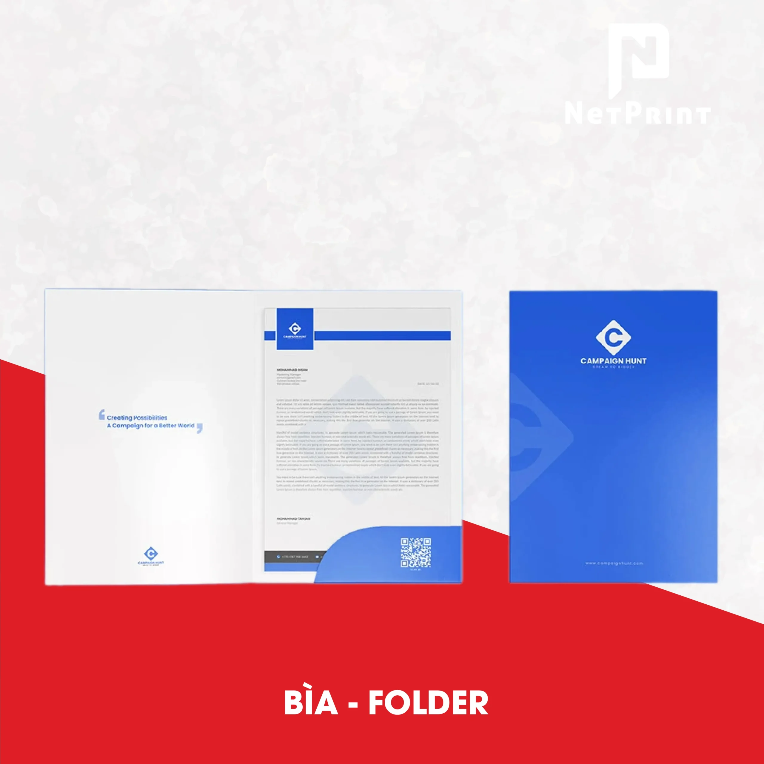 Bìa kẹp hồ sơ là tờ bìa gấp đôi (nó còn được gọi là Folder) thường được dùng để kẹp tài liệu, đựng hồ sơ. Đây là một ấn phẩm thuộc bộ nhận diện thương hiệu, được sử dụng để chứa đựng các loại tài liệu như hợp đồng, văn bản, name card, các tấm tờ rơi, brochure,…
